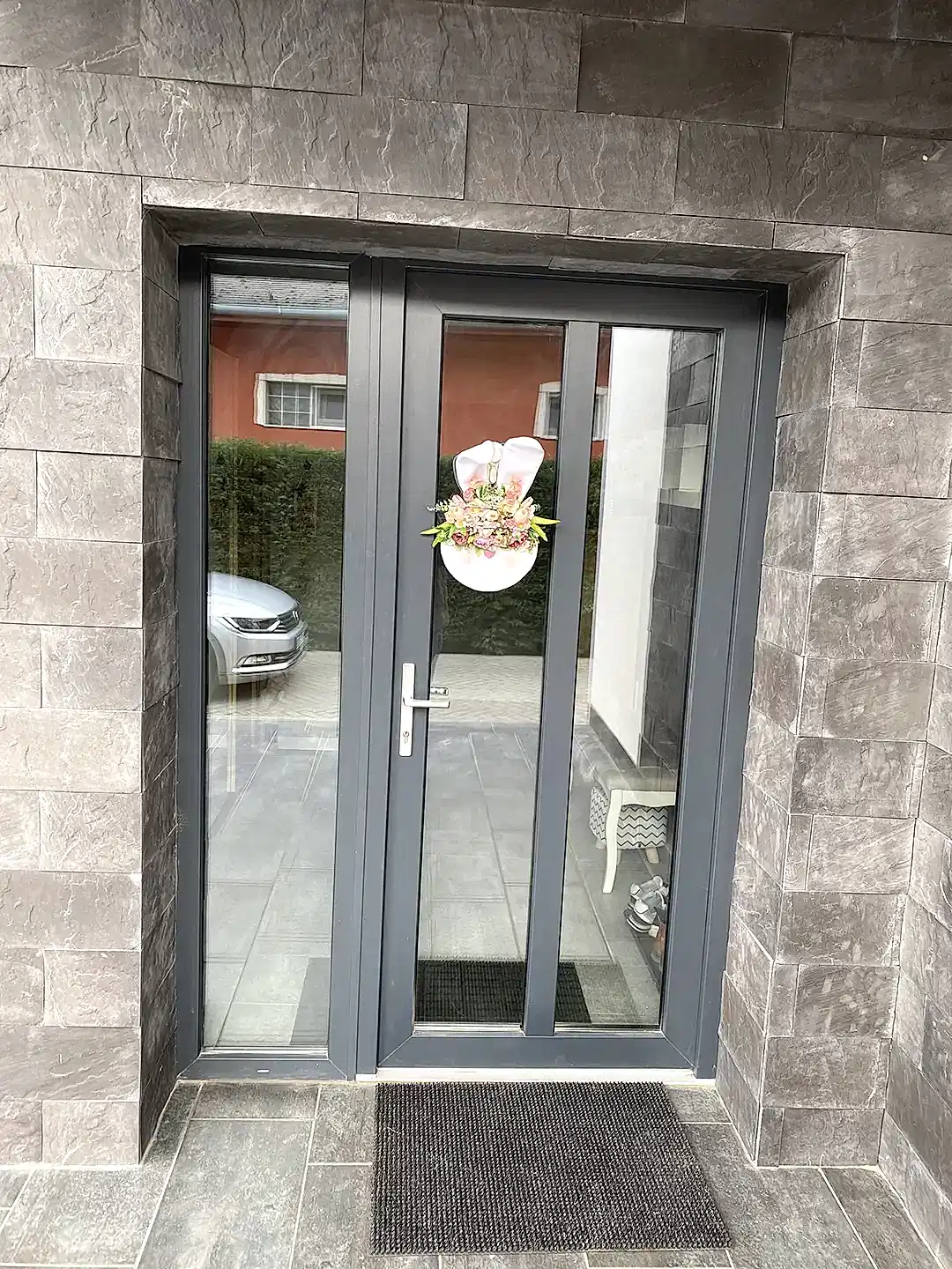 A modern üveges műanyag bejárati ajtó tökéletes választás, ha egyszerre szeretnénk letisztult megjelenést, energiahatékonyságot és hosszú távú tartósságot. Praktikus megoldás minden olyan ingatlanhoz, ahol a design és a funkcionalitás kéz a kézben jár.