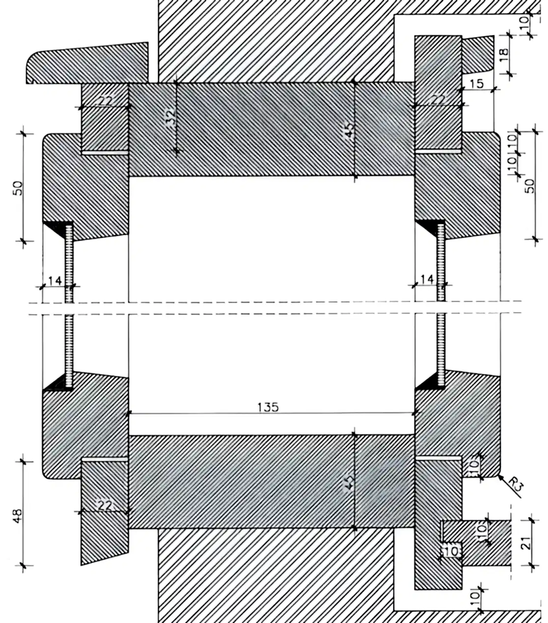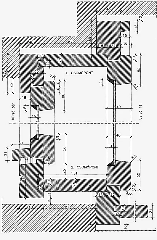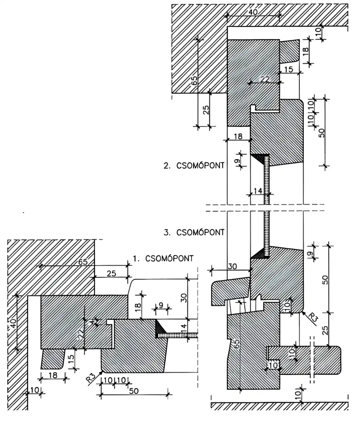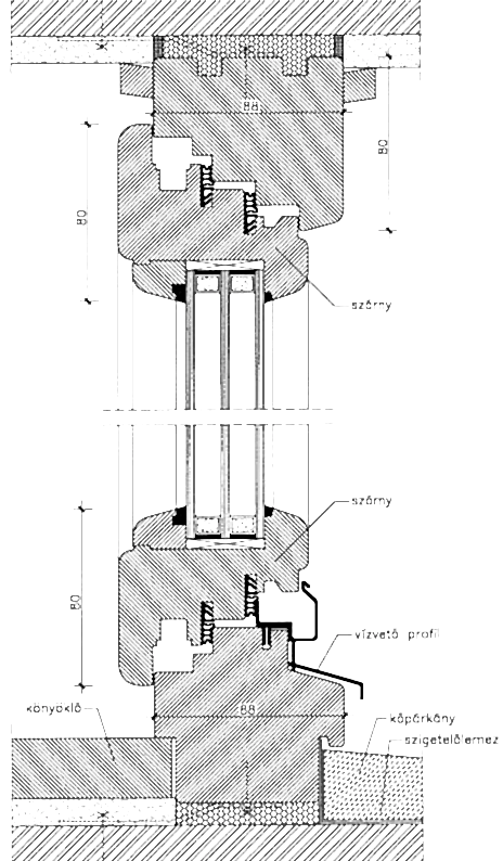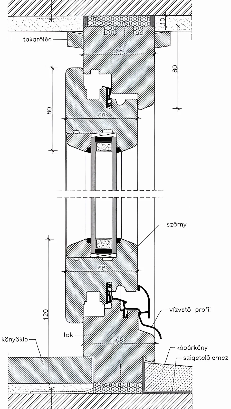 Az alábbi képen a régi gerébtokos fa ablak metszete látható, amely szemléletesen mutatja be szerkezetét és kialakítását.
