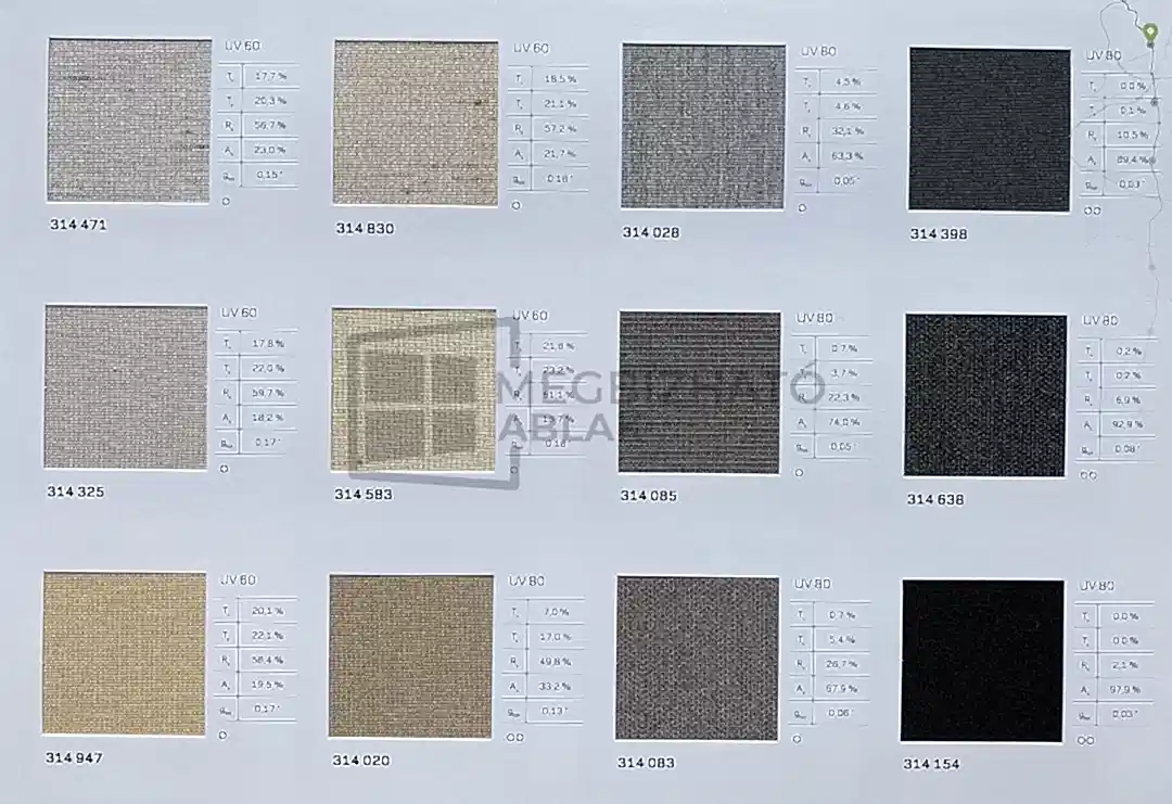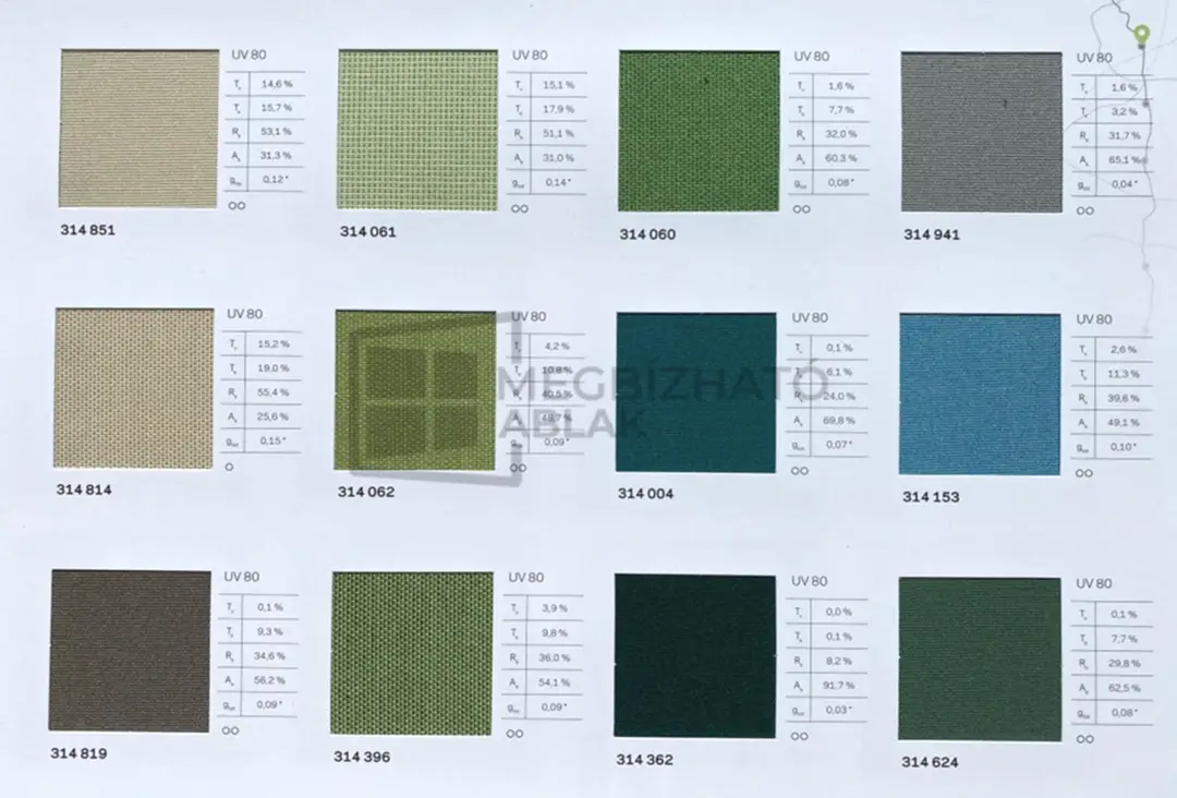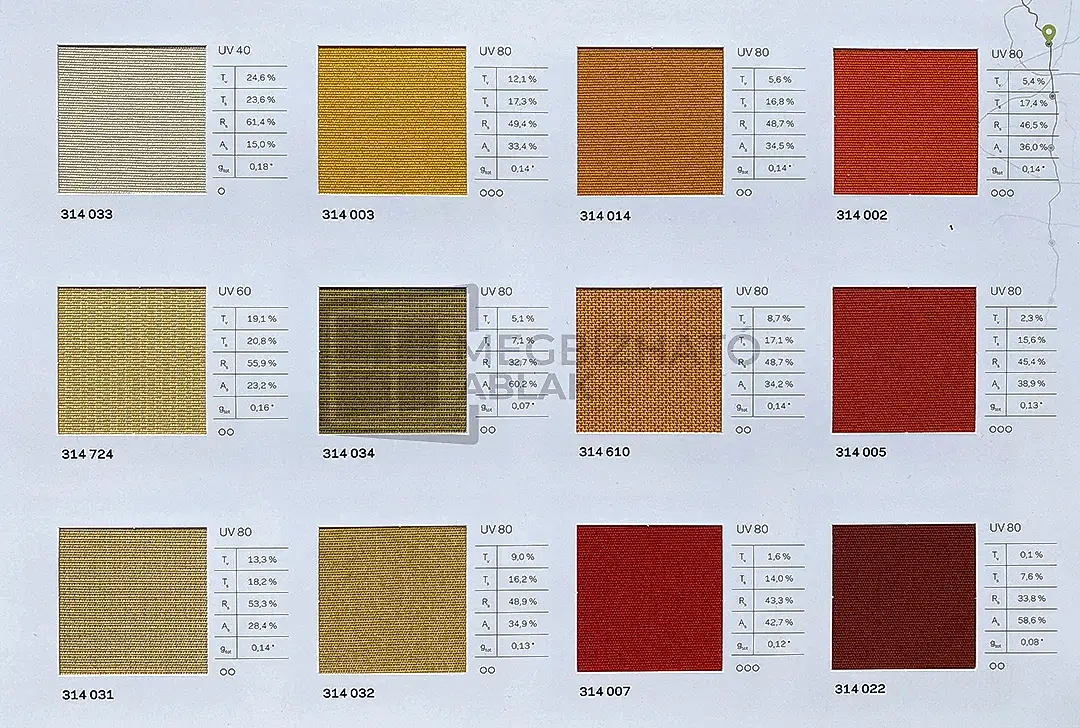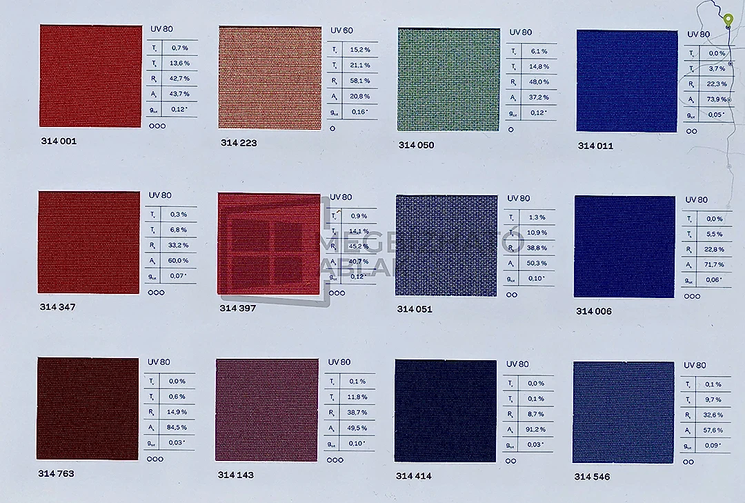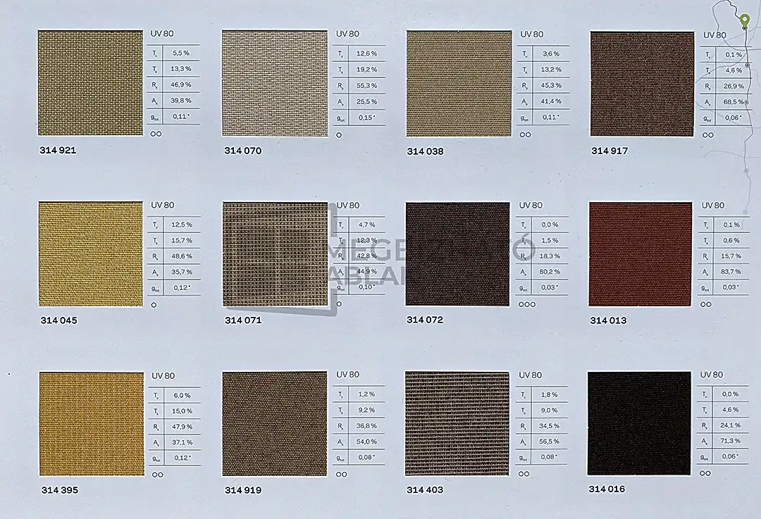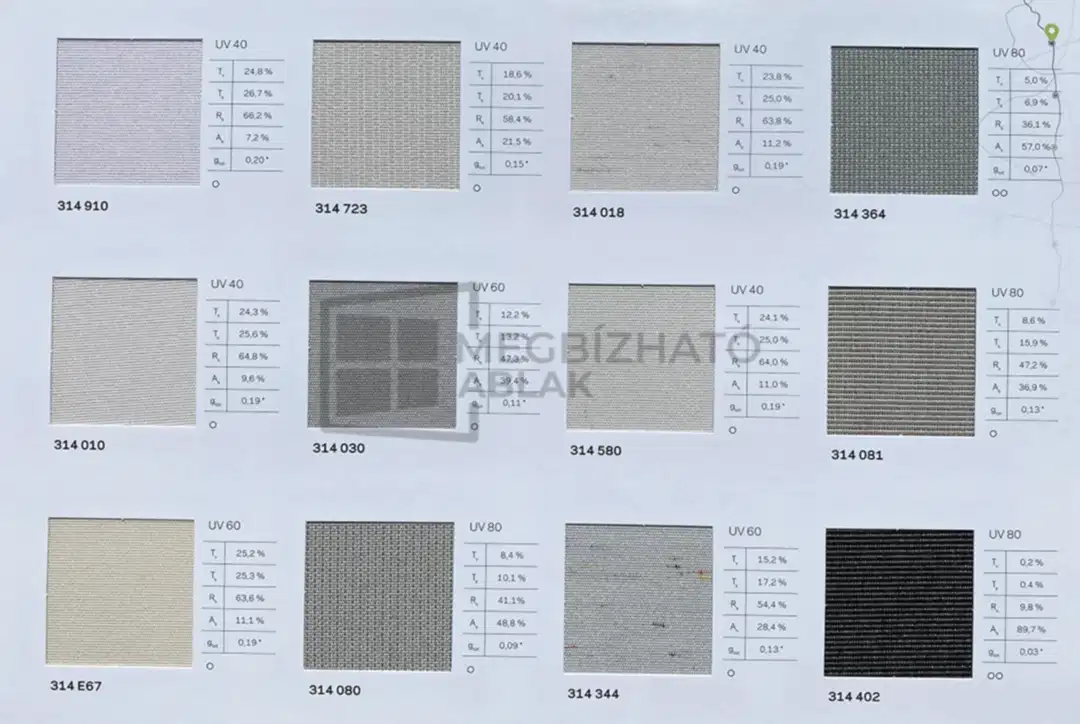 A napellenzők esztétikai hatását jelentős mértékben a textil kiválasztása határozza meg. A színminták útmutatást nyújtanak a lehetséges mintákról és színekről, de a végső választást a termék személyes felmérésekor, illetve a valódi textilminták alapján érdemes meghozni.