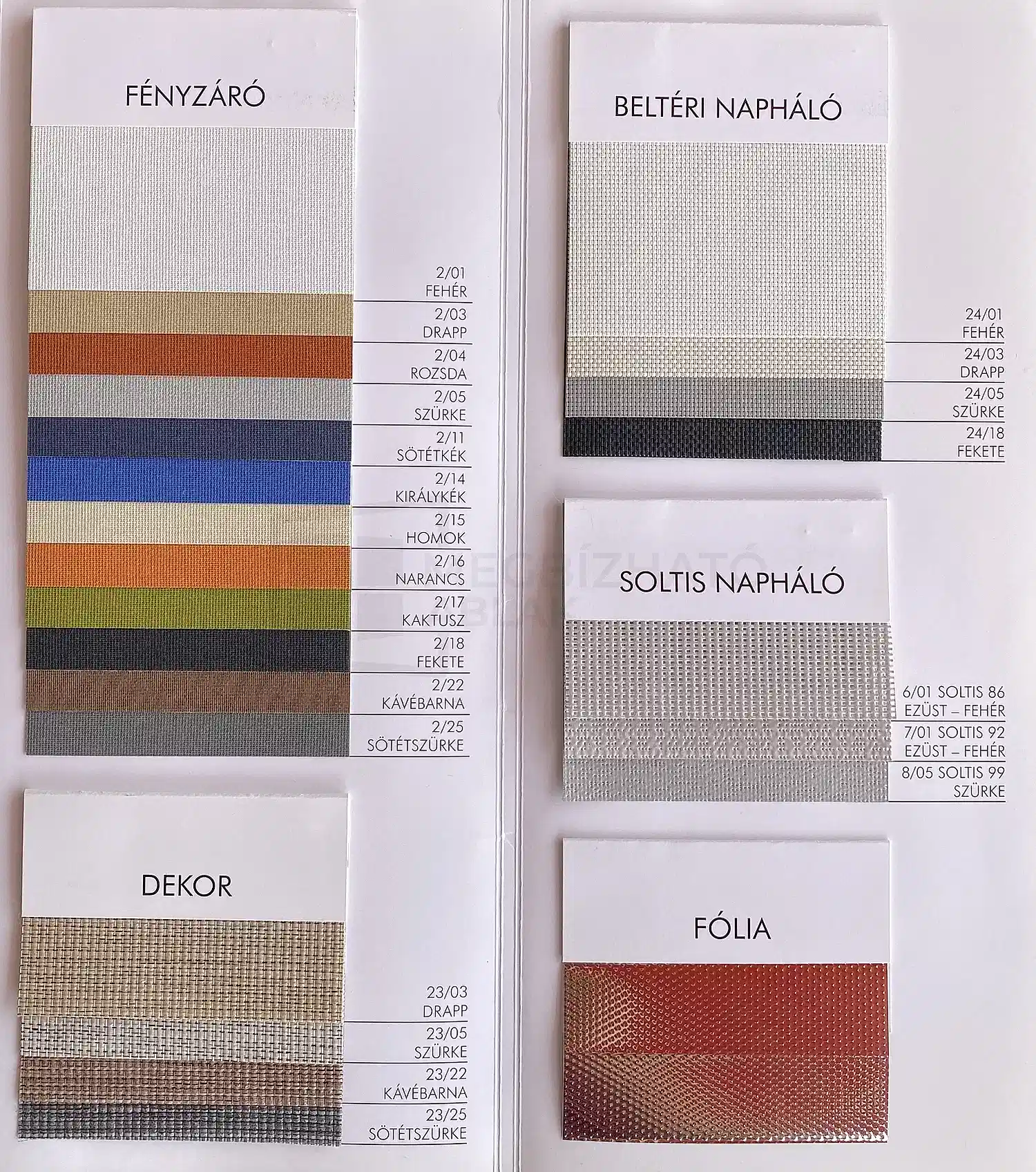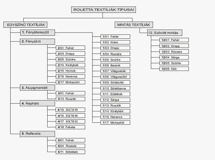 Széles textil palettáról választhat, beleértve fényzáró és fényáteresztő opciókat is. Ez lehetővé teszi, hogy a roletta tökéletesen illeszkedjen otthona vagy irodája dekorációjához.